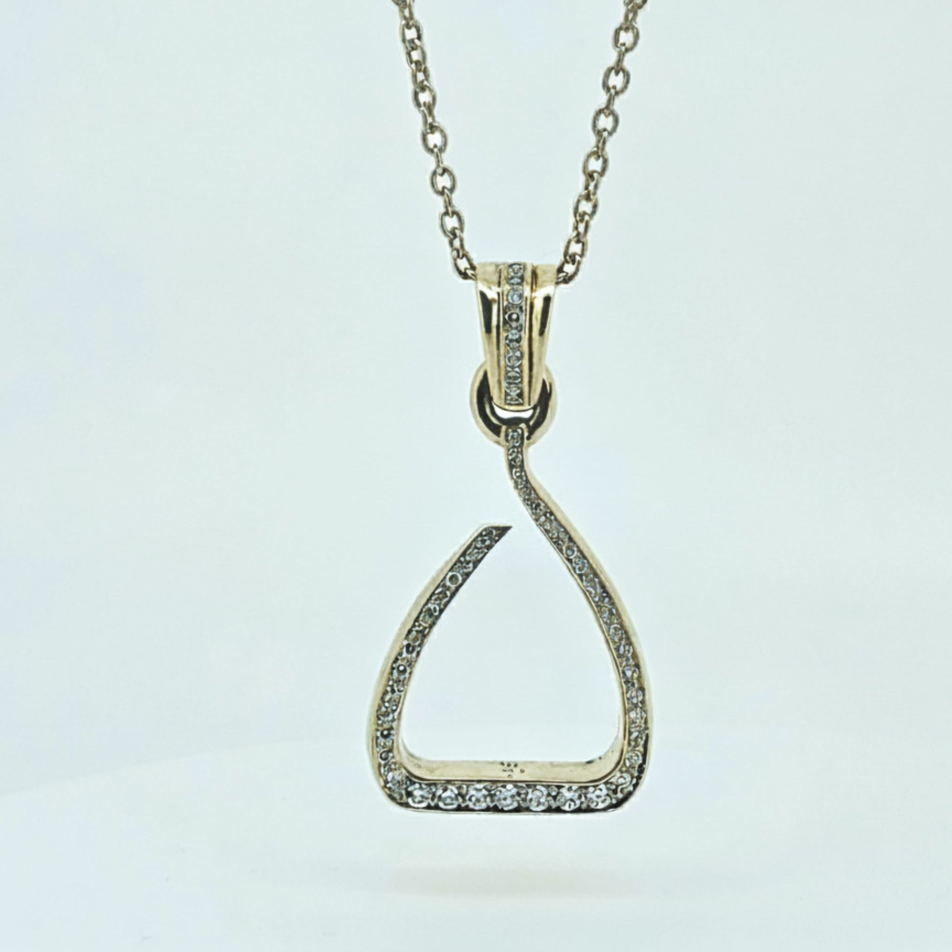 Crawford Equestrian Jewellery Gold and Diamond Jump Stirrup Pendant. This exquisite masterpiece unites modern equestrian innovation with the timeless brilliance of fine diamonds. Where performance meets prestige — own the ultimate symbol of equestrian excellence and wear a masterpiece that truly shines.