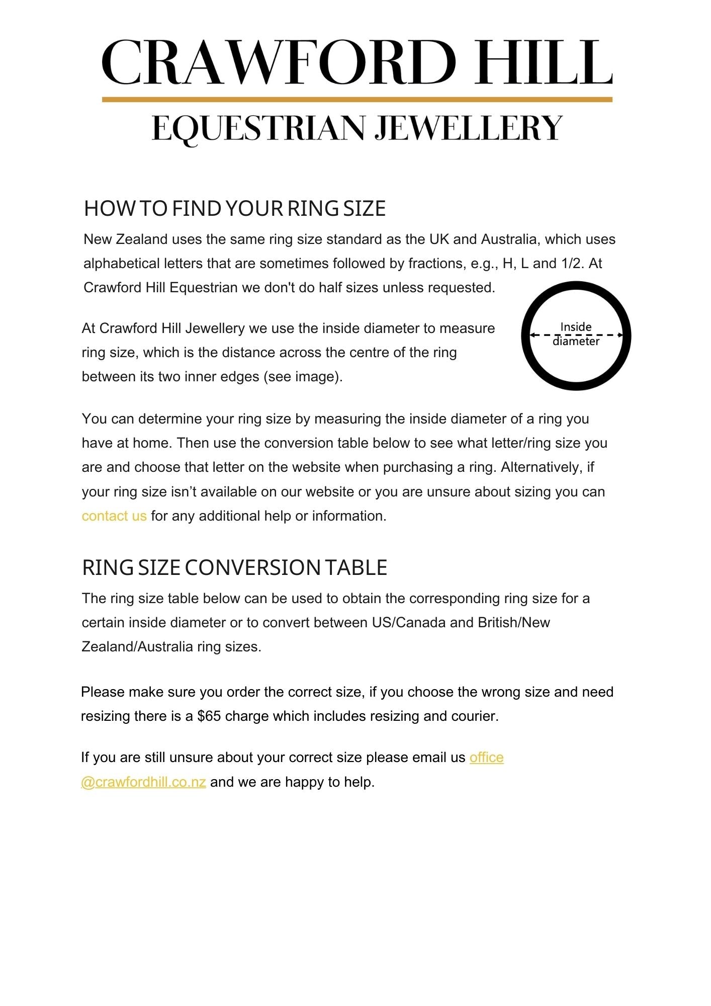 Your Crawford Equestrian Jewellery ring is crafted for a lifetime of wear. To maintain its brilliance: