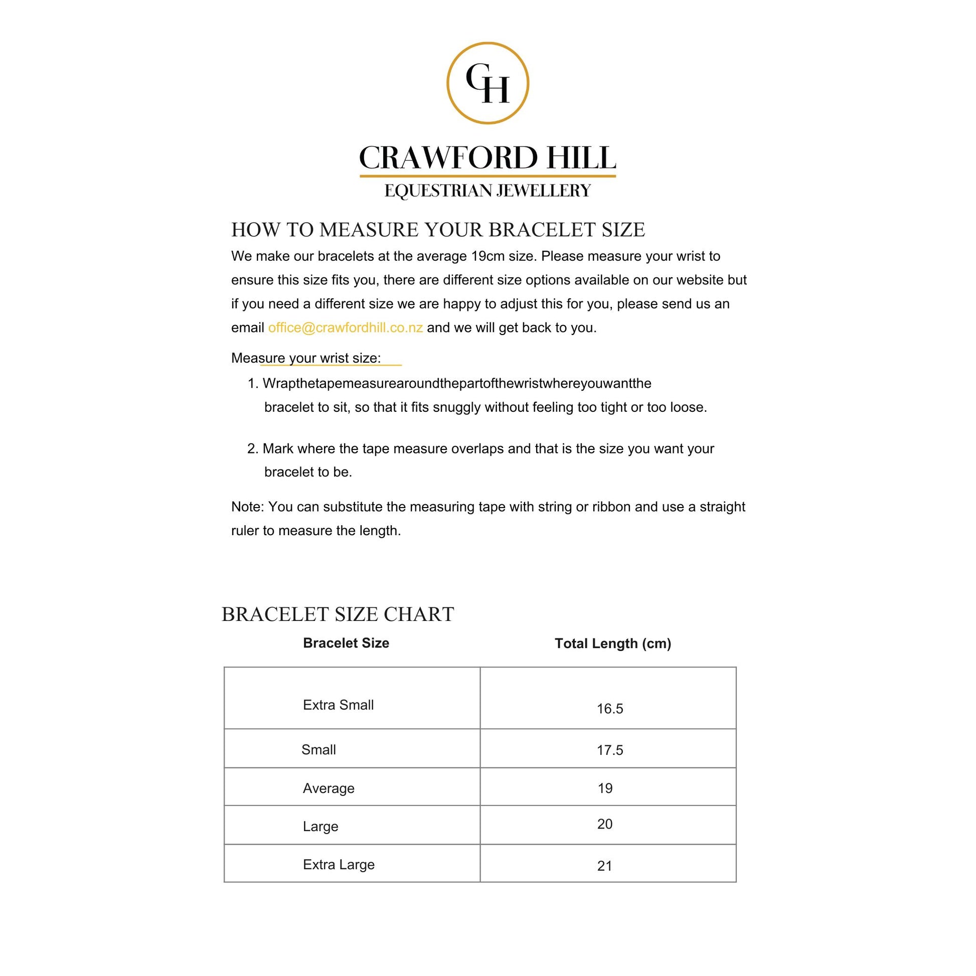 Your Crawford Equestrian Jewellery bracelet is crafted to last a lifetime. Follow these care recommendations to preserve its lustre and integrity:
